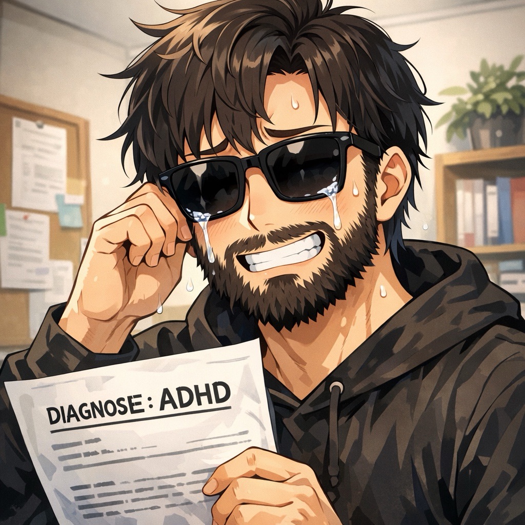 The other side: Is it a reason to cry? I think it would have been a few months ago, because I had not such a big clue about the mechanisms of ADHD in adults. And maybe since I was in the Pink Cloud, still, I didn’t want to hear anything about it. Probably a reason to cry would be if I thought in terms of stigmatisation. But hey: I am diagnosed with anxiety disorder with aspects of depression and I had abusive alcohol consumption as a problem. So, if there are things in my life that I can work on for the next 10-20 years (or even for the rest of my life), that’d be my anxiety and my recovery. ADHD is just a minor “stigma” and I don’t even know if it’s necessary to get supplementary medication or exchange it for Prozac (which I take for my anxiety disorder), compared to the other diseases.